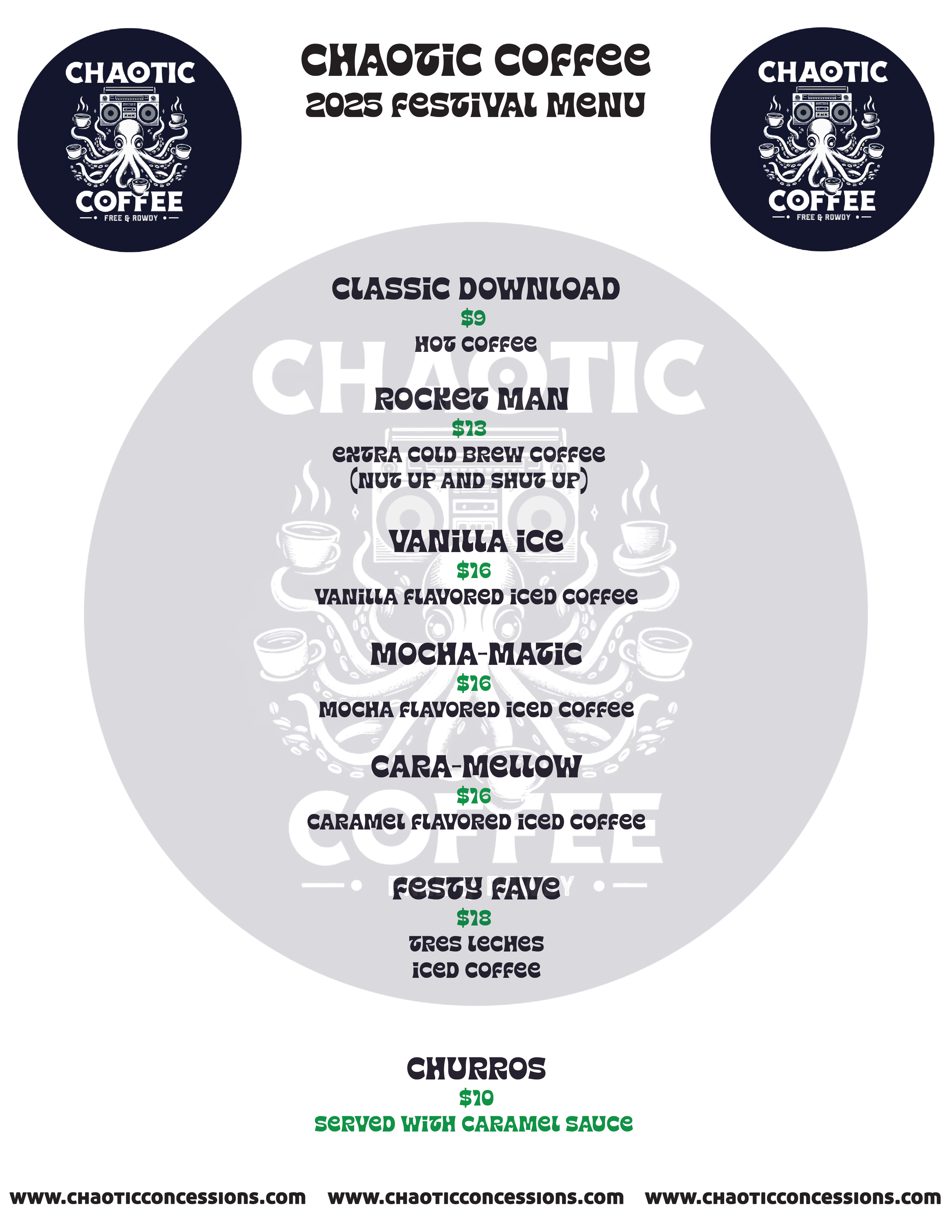 Chaotic Coffee, a creation from the innovative team at Chaotic Concessions, is here to cater to the high-energy demands of festival-goers. As attendees navigate the long, hot days moving from one show to the next, our specialty lies in providing the essential energy boost they crave to keep the chaos at bay…or revel in it!
