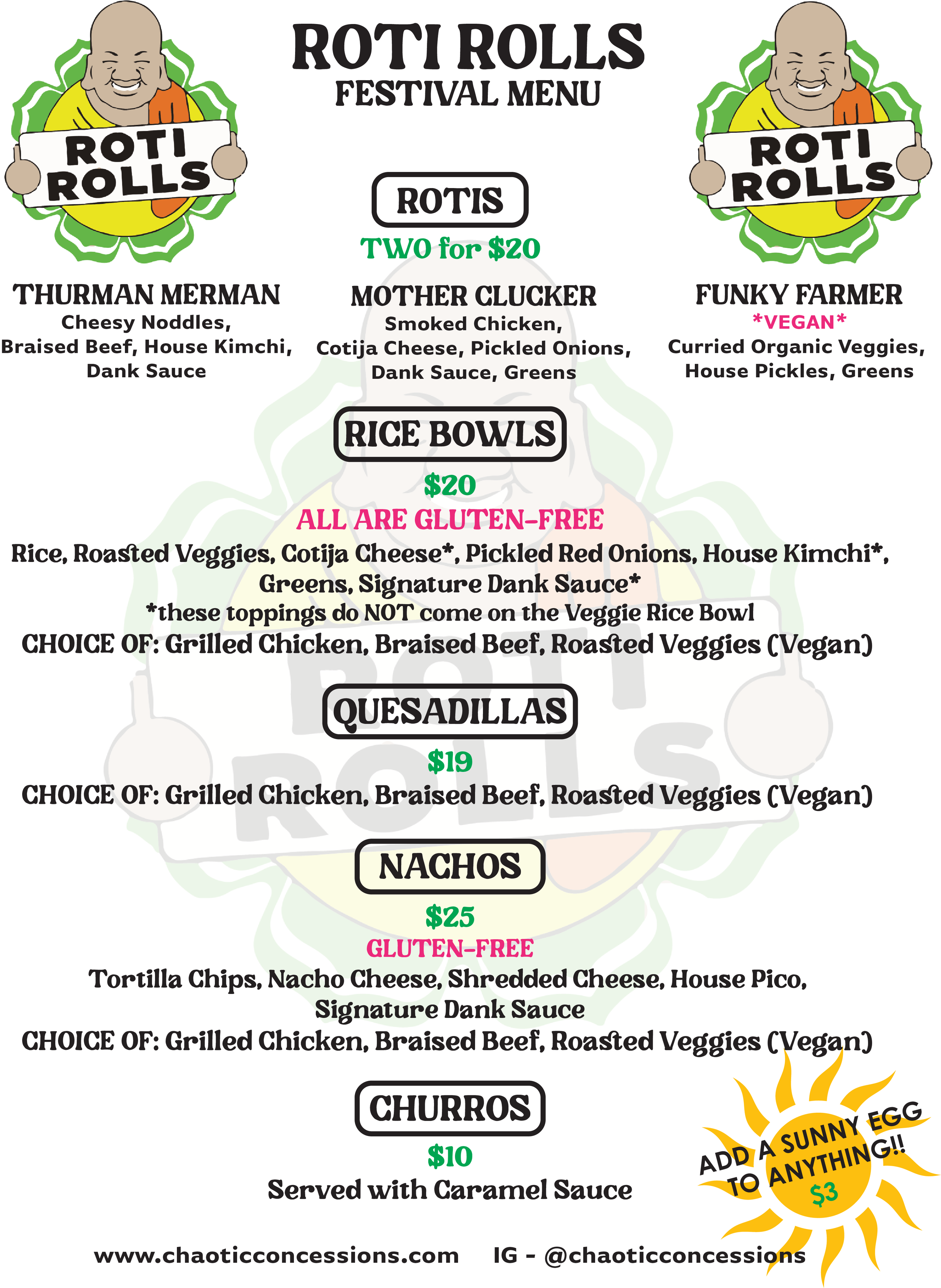 Born in 2009, Roti Rolls has been slinging high-quality festival food to the masses for over ten years. We've been a staple in the festival circuit since our first trips to Hangout and Bonnaroo in 2011 & 2012.